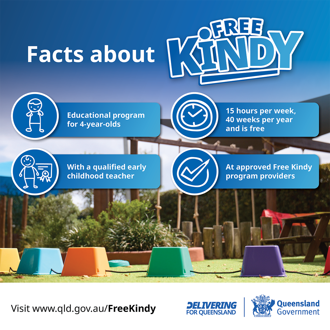 We offer Qld Government approved "FREE KINDERGARTEN" for ALL eligible children, for 15 hours per week for 40 weeks per year. Regardless of your family income, Kindergarten Sessions for ALL eligible children at this service are FREE for 15 hours per week for 40 weeks per year.